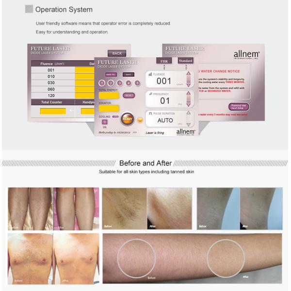 Futurelaser 808nm semiconductor laser hair removal beauty instrument uses a standard laser wavelength of 808nm laser, semiconductor laser emits near-infrared light waves, can penetrate into the hair follicle roots, heating the pigment and spread throughout the hair follicles, both to accurately destroy the hair follicles, but also does not cause adjacent Tissue damage, permanent hair removal.